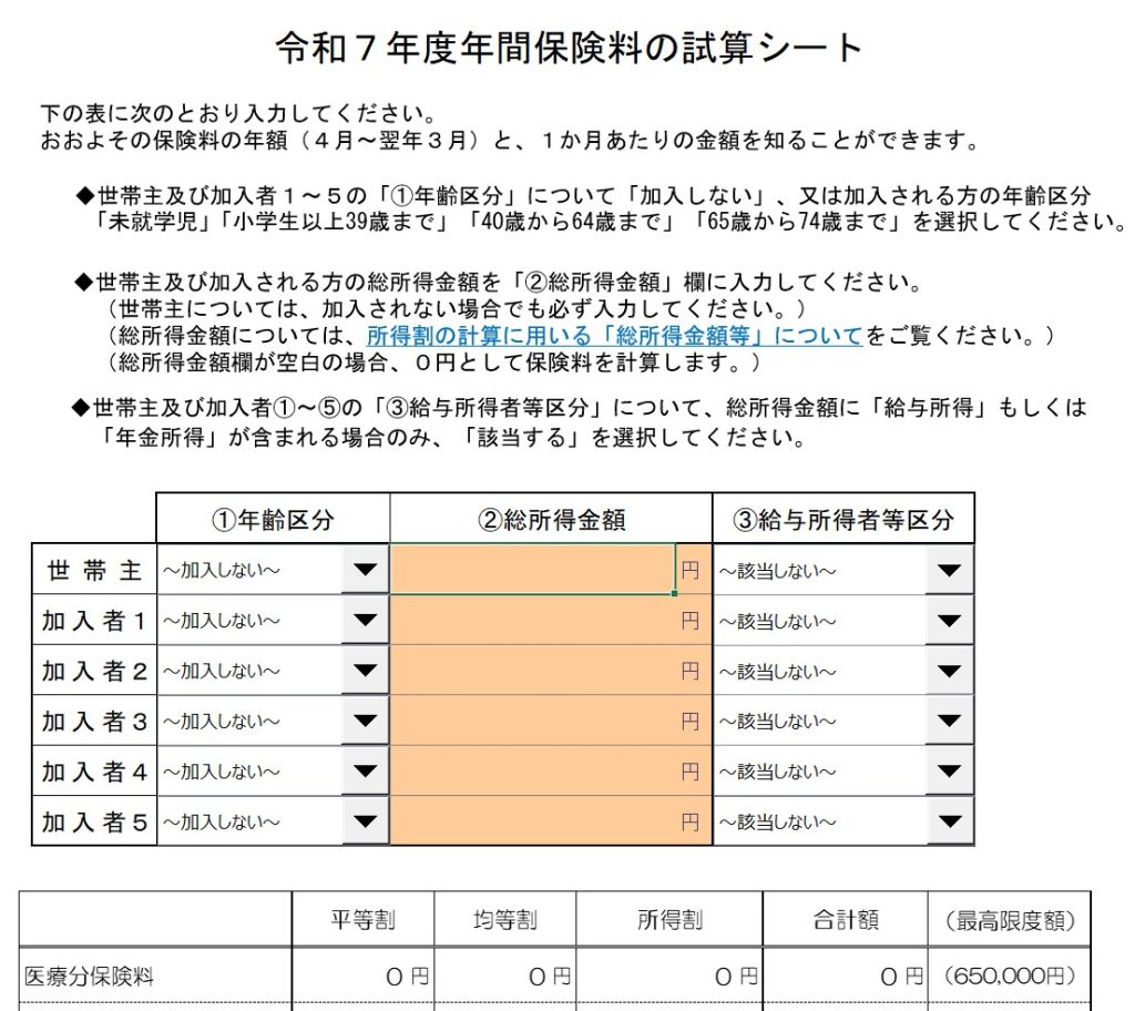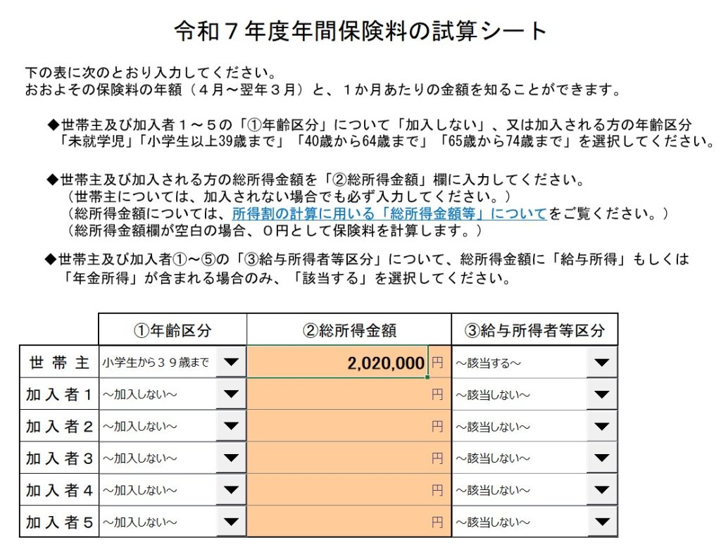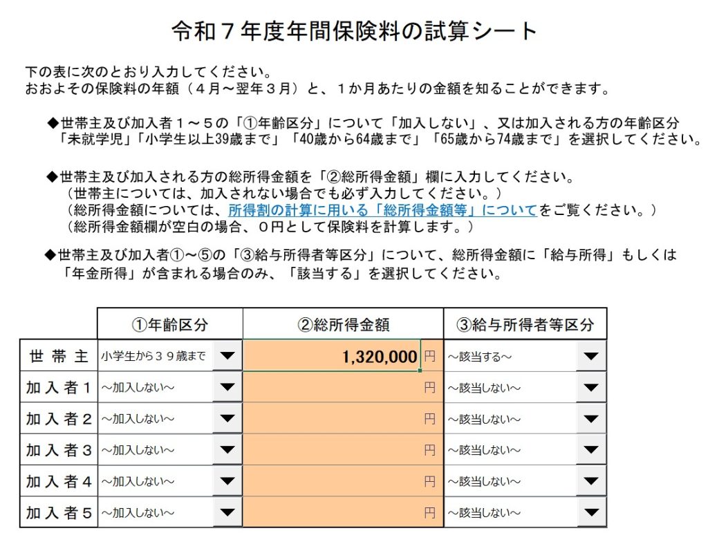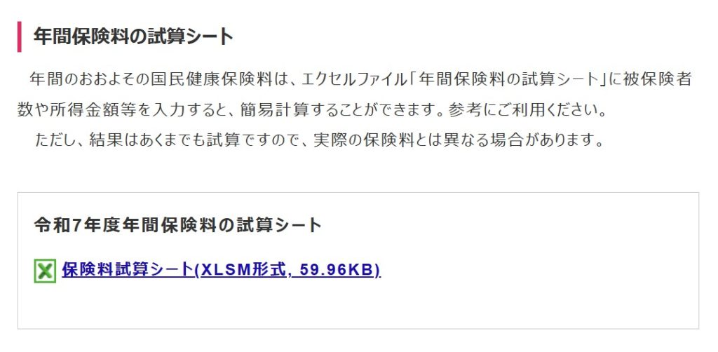 年間保険料の計算シートのExcelファイルが用意されていますので、そちらを利用すれば便利です。