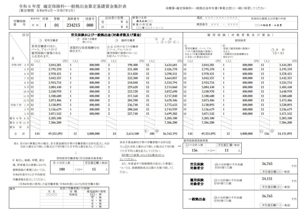 令和6年度 確定保険料算定基礎賃金集計表/令和6年度 確定保険料算定内訳 記入例[375KB]