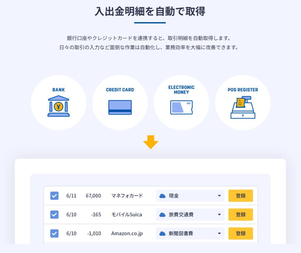 クラウド会計などでは、銀行口座をデータ連携して、入出金データを自動で取得出来たりします。