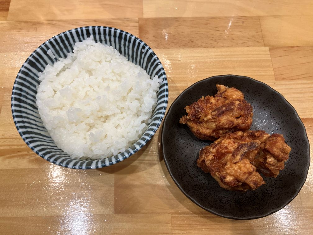まずは「からあげセット」のご飯(小)とからあげ2個から提供いただきました。