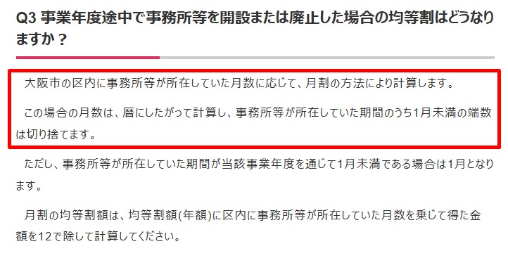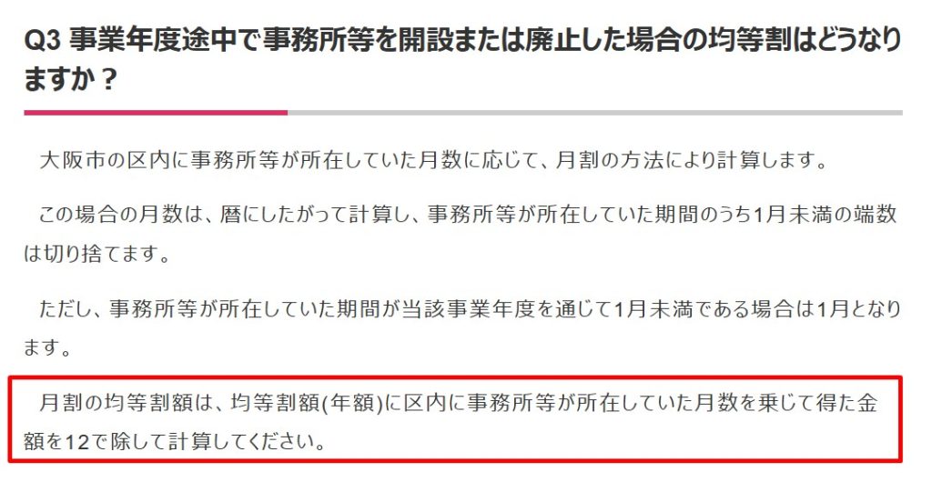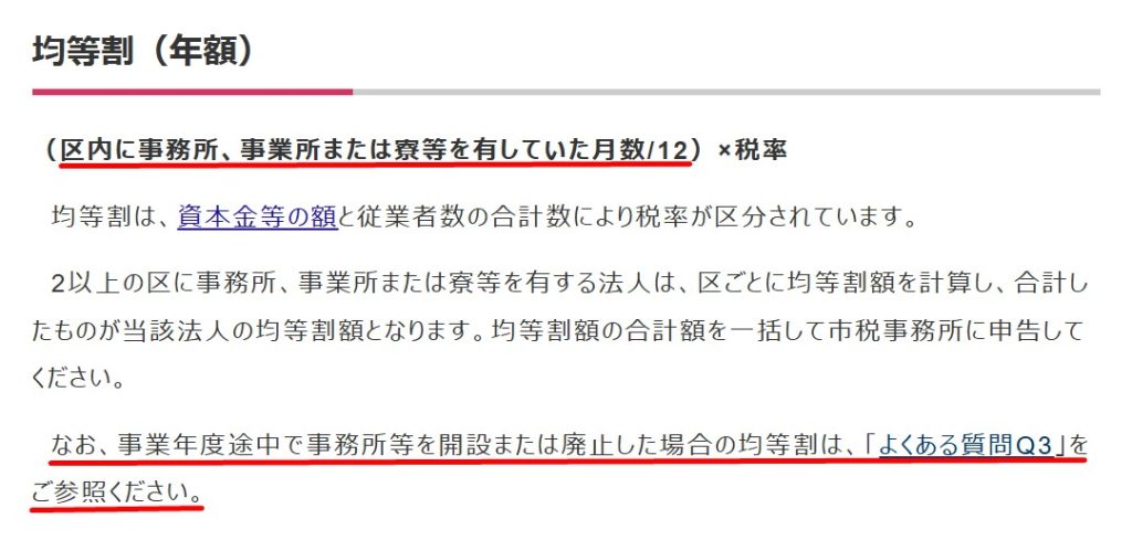 設立初年度に異動した場合の法人市民税の均等割の計算