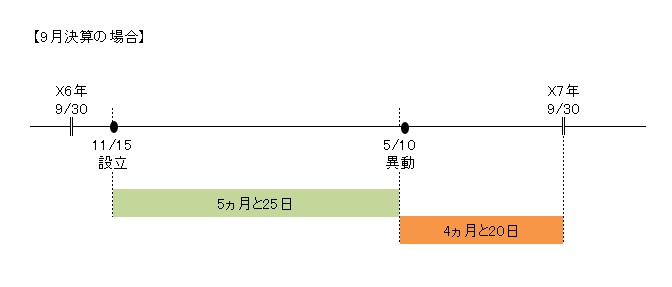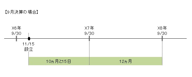 例えば、9月決算の法人で、X6年11月15日設立と同時に事業を開始した場合。