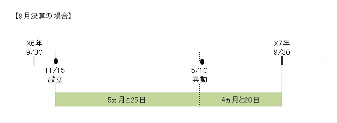 X6年11月15日~X7年9月30日までは、10ヵ月と15日なので、月数は10ヵ月。