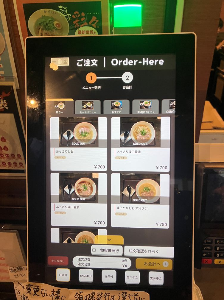 店内にある券売機で食券を購入してから、席に案内されるスタイルです。