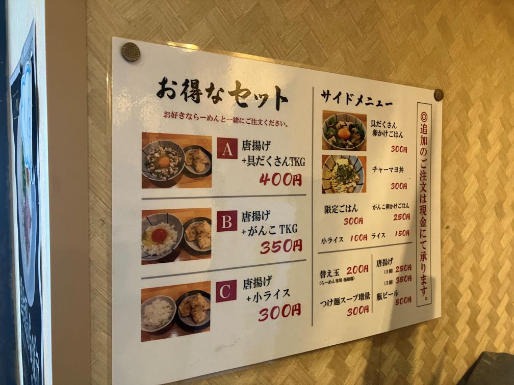 ラーメンの種類が複数あって、セットメニューも充実しているので、好きな感じです。