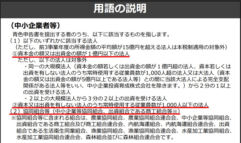 この中小企業向けの賃上げ促進税制の適用を受けるためには、まず中小企業者等に該当する必要があります。