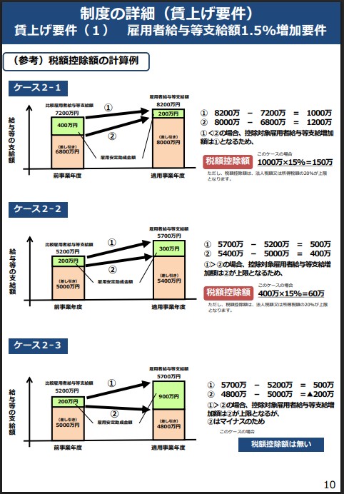 ざっくり言えば、前期の人件費よりも当期の人件費の方が一定割合以上増加していれば、その増加した金額の一定割合を法人税等の税金から控除出来るというものです。