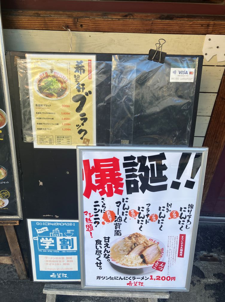 店外看板メニューの一部です。