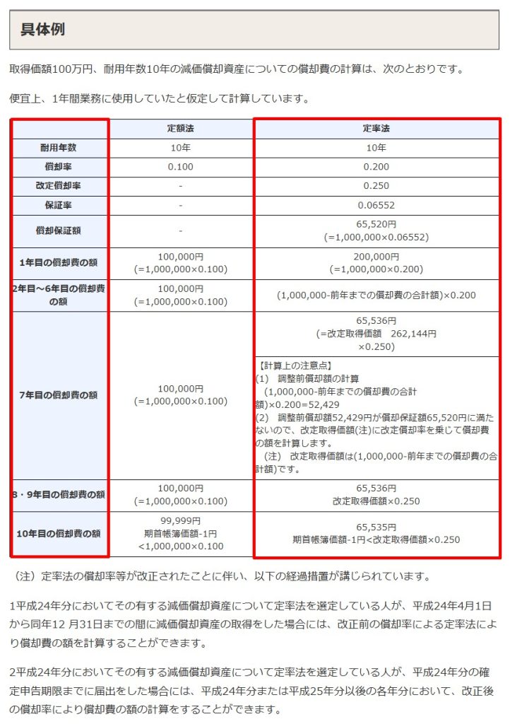 定率法については、取得価額から減価償却費を引いた簿価に償却率を掛けていくため、試算するには少し手間暇が掛かりそうです。