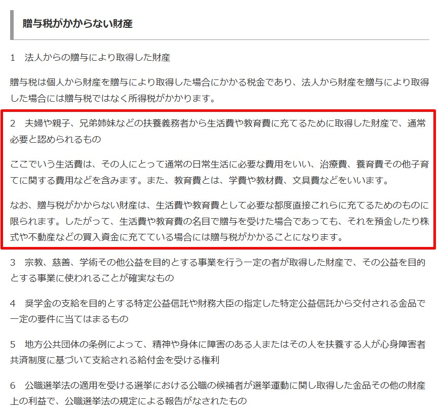 「・・・株式や不動産などの買入資金に充てている場合には贈与税がかかる・・・」とあるように、夫婦間で配偶者のNISA資金を負担している場合には、贈与税がかかることになります。