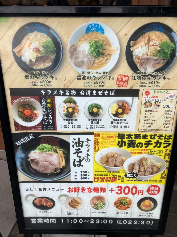 店外メニューの一部です。