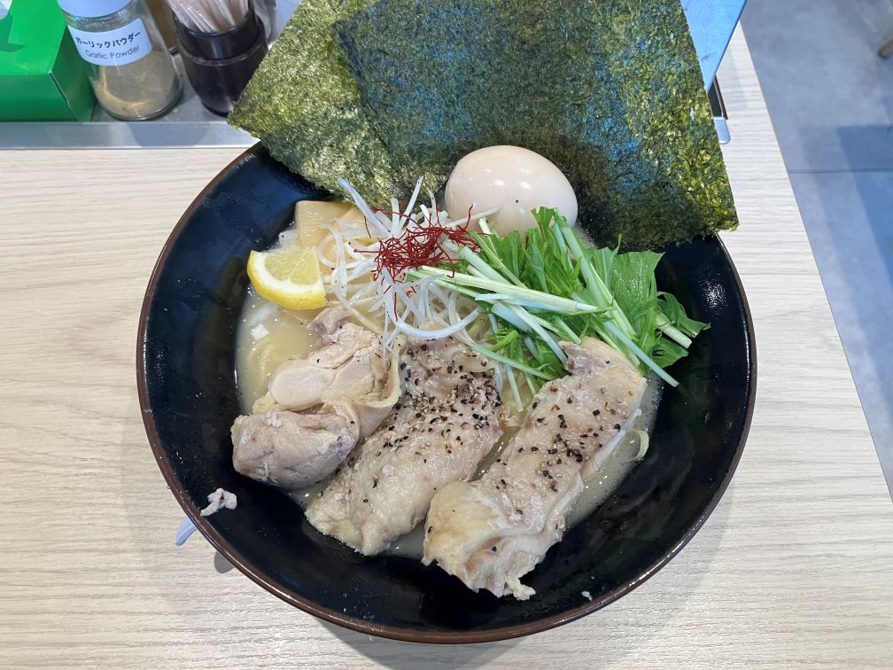 濃厚な鶏白湯のスープに負けないぐらいのトッピングで、食べ応えがあります。