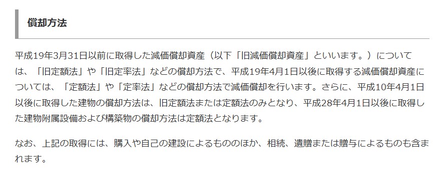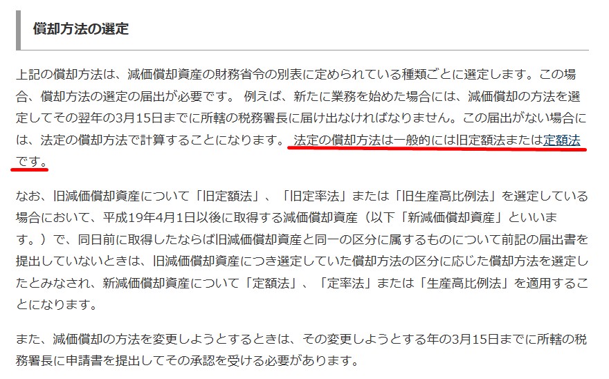 ただし、税務署等に手続きをすることで、「定額法」以外の償却方法を選択することが出来ます。