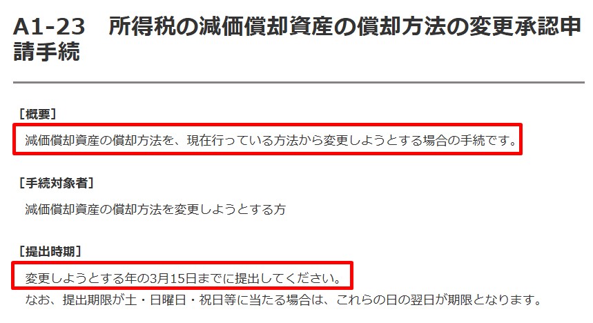 A1-23 所得税の減価償却資産の償却方法の変更承認申請手続