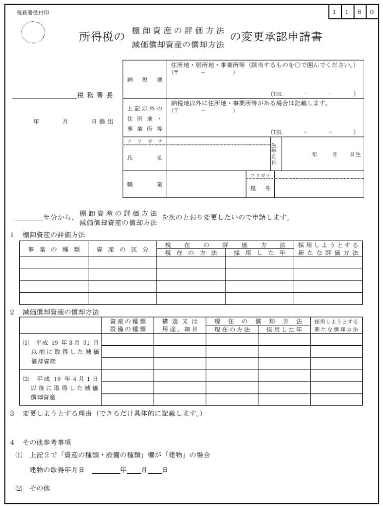 所得税の棚卸資産の評価方法・減価償却資産の償却方法の変更承認申請書(PDF/126KB)