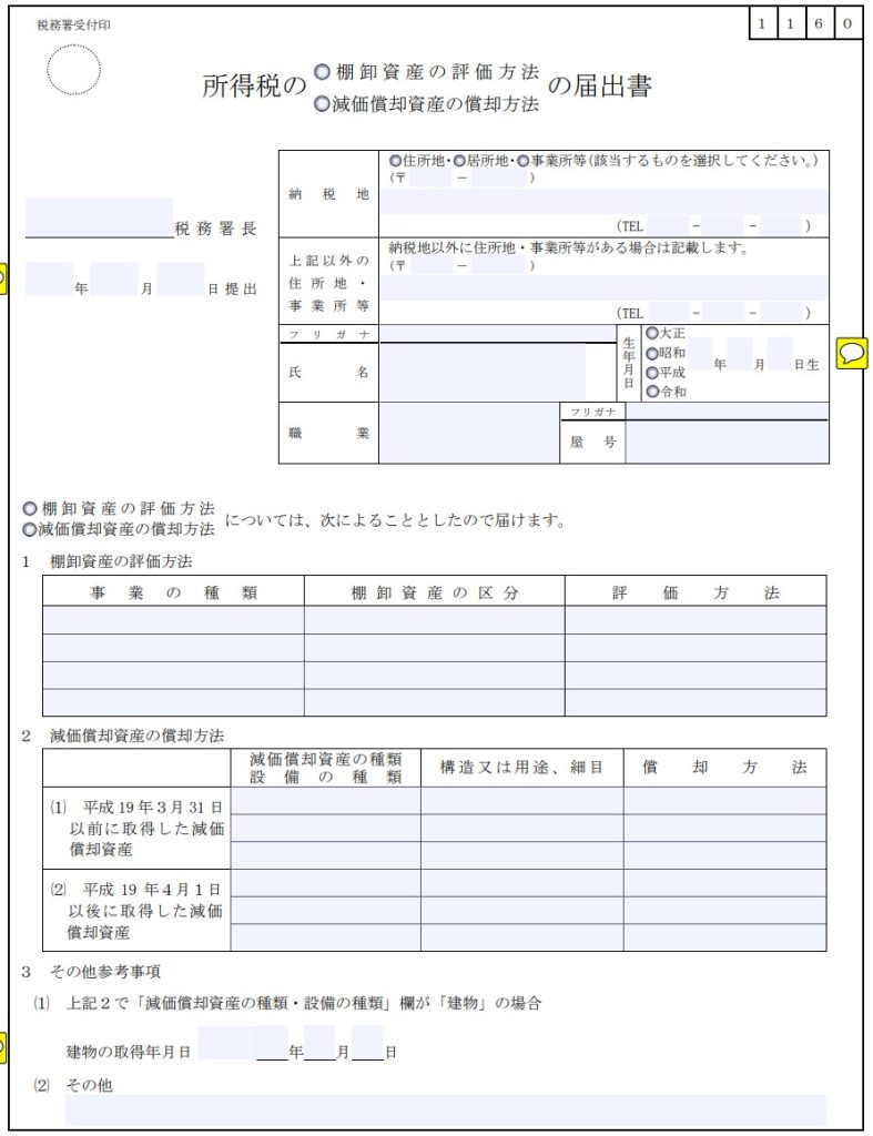 所得税の棚卸資産の評価方法・減価償却資産の償却方法の届出書(PDF/563KB)