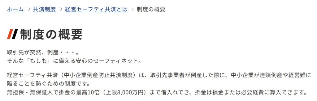 経営セーフティ共済については、中小機構のホームページに詳細が記載されています。