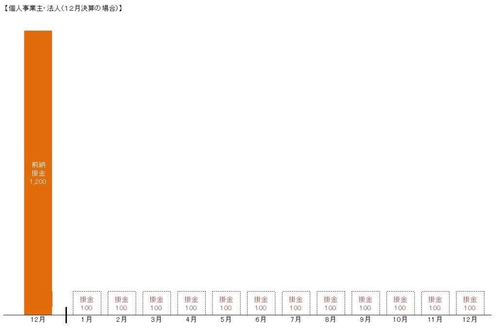 12か月分の掛金を前納すると場合であれば、こんなイメージです。