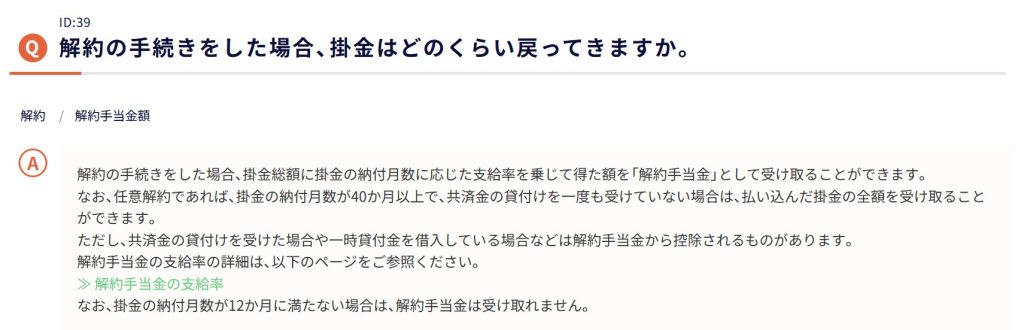 掛金の納付月数に応じて解約手当金が戻ってきますが、納付月数が40か月以上であれば、掛金の全額が戻ってきます。