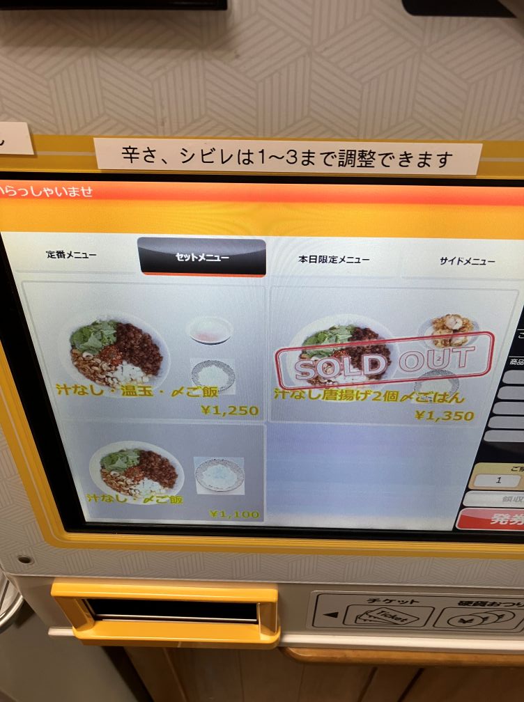 券売機メニューの一部です。