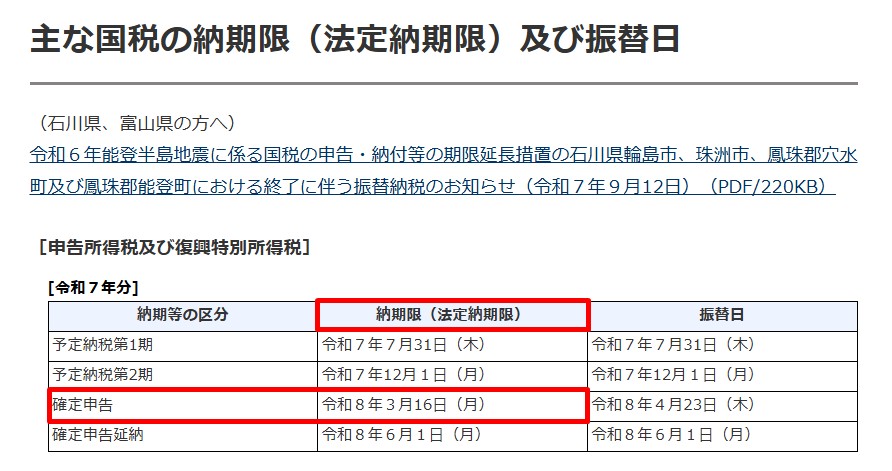 令和7年分の場合は、令和8年3月16日が期限となります。