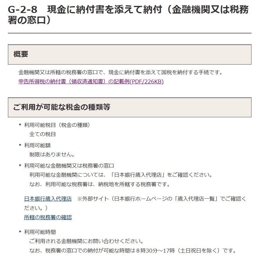 G-2-8 現金に納付書を添えて納付(金融機関又は税務署の窓口)