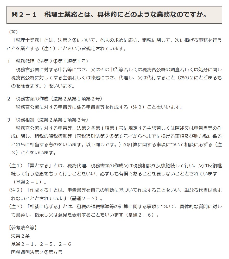 問2-1 税理士業務とは、具体的にどのような業務なのですか。